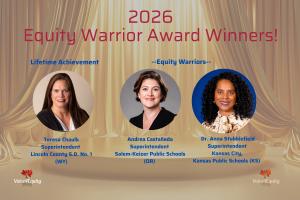 Superintendent Teresa Chaulk (WY), Superintendent Andrea Castañeda (OR) and Superintendent Anna Stubblefield (KS) selected as 2026 Equity Warriors!